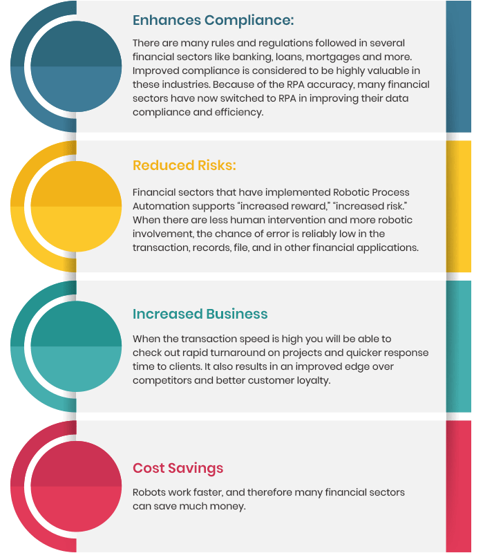 Enhance the speed and efficiency of your core business with Intellectfaces approach to Robotic Process Automation. The below infographics describes the use of Robotic Process Automation in the Financial Sectors in depth.